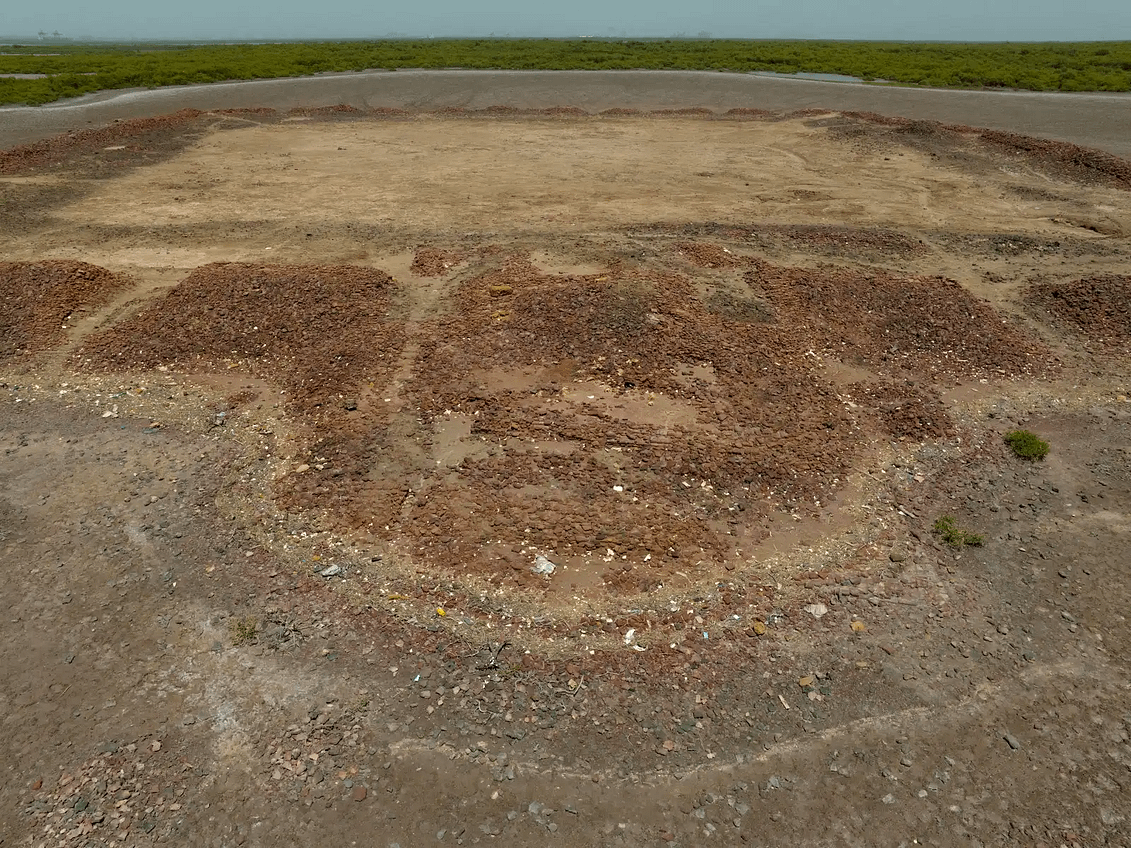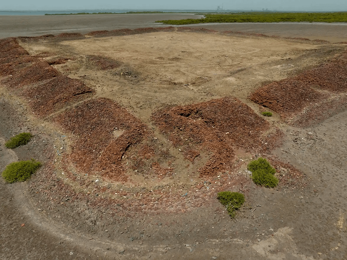جو نشانو بڻايو ويو آهي. موسمياتي تبديليءَ جا اثر انهن خطرن کي وڌائين ٿا. سنڌوءَ جي ڊيلٽا ۾ سمنڊ جي سطح جي وڌندڙ بلندي ۽ لوڻ  جي مقدار ۾ اضافو ماڳ جي تحفظ لاءِ سنگين خطرا  پيدا ڪري ٿو. جيئن ٻيٽ جي بلندي سمنڊ جي سطح جي نسبت ۾ گهٽجندي پئي وڃي، تيئن مستقل ٻوڏ جو خطرو وڌي ٿو پيو. اهي ماحولياتي چيلينجز ڊيلٽا جي ٻين ثقافتي ورثي واري ماڳن کي پيش ايندڙ خطرن جي مشابهت رکن ٿا. انهن کي فوري تحفظ جي ڪوششن جي ضرورت آھي.